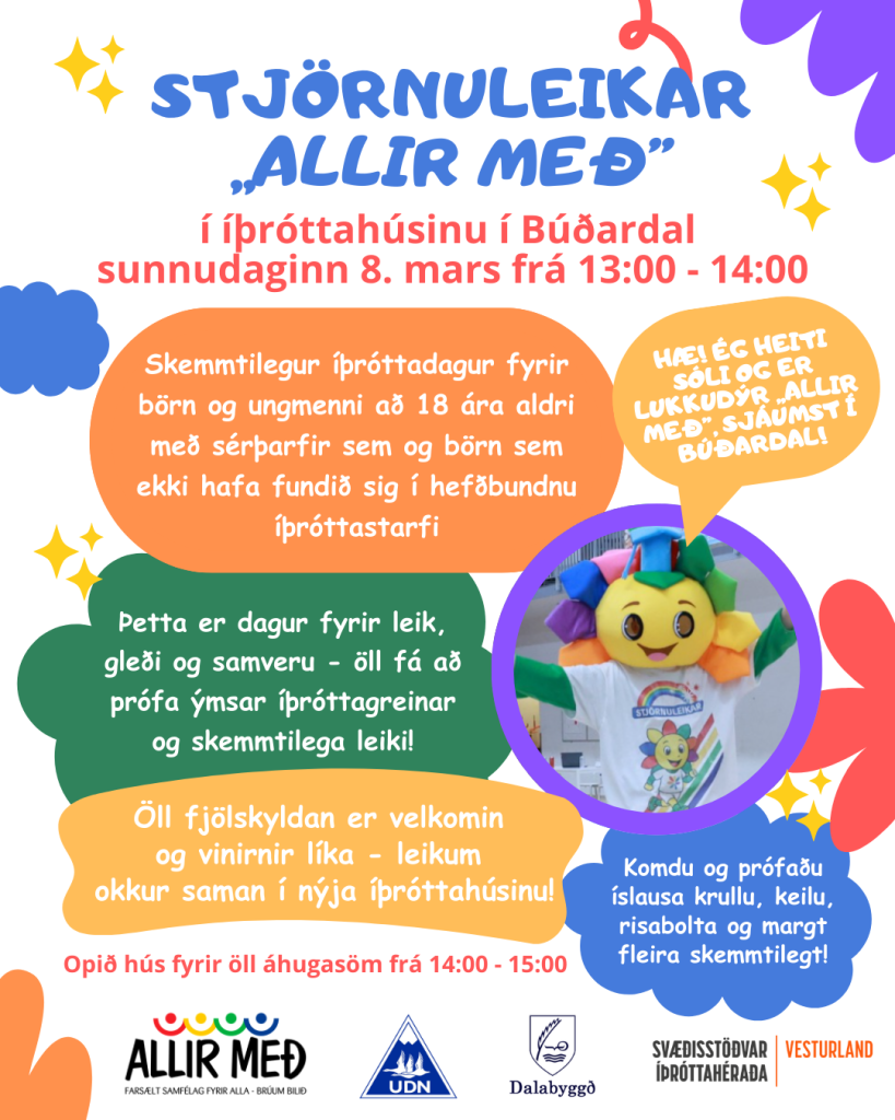 Stjörnuleikar „Allir með“ verða haldnir í nýja íþróttahúsinu okkar sunnudaginn 8. mars kl 13:00-14:00.